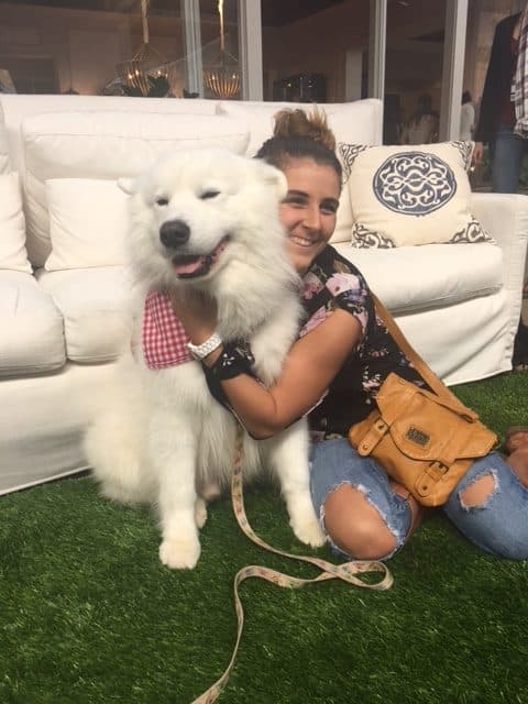 Caitlin’s hugging a gorgeous pup at a Crypton home promotion for Universal to the Trade Furniture.