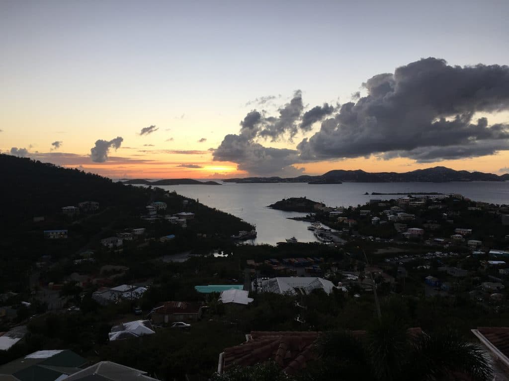 The view from the ferry as you enter into the Port of St. John, with its beautiful, Spanish style homes.